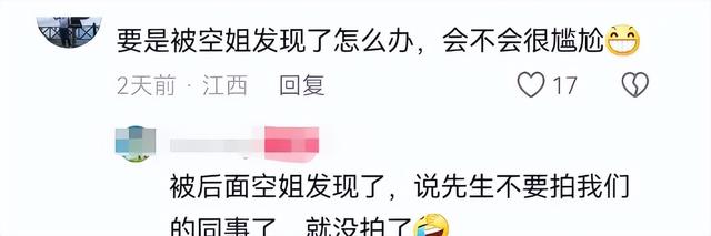 有人觉得在飞机上拍空姐被发现了也没啥,调侃这是大爷 “亲自拍的,有人在‘捡漏’”。