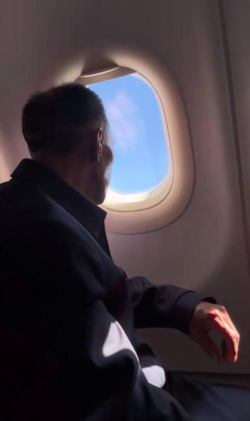 在一次普通的飞行旅程中,大爷坐在靠窗的位置,享受着飞机平稳飞行带来的宁静。