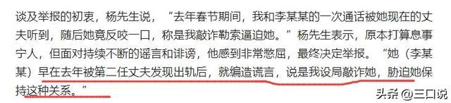 就编了个谎话,说是杨先生设局敲诈她、胁迫她。