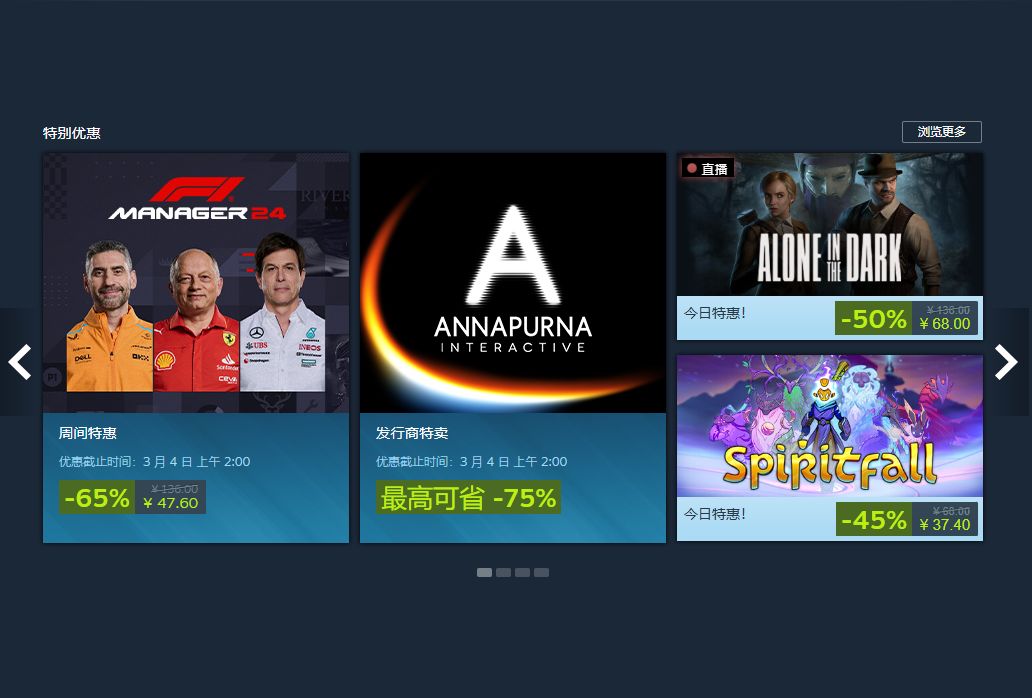值得一提的是,每日特惠活动的折扣时间也有所调整。虽然主要曝光和推广仍为24小时,但折扣通常会持续一周。这样一来,更多玩家可以参与到促销活动中,游戏在Steam畅销榜和其他排行榜上的曝光率也将得到提升。