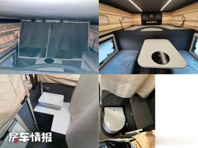而这款车采用的这种直接和背驼式房箱组合的形式,也是一种比较适合户外越野玩家的选择,毕竟常规C型皮卡房车,自身重量大、体积大,并不适合中重度穿越,但是换为这种形式,则就越野玩家既可以享受户外长途穿越的乐趣,同时也能满足夜晚野外住宿过夜的应急需求。