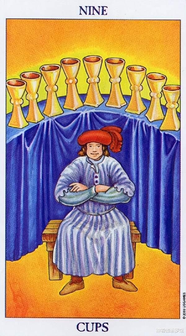 分析:圣杯九牌面上的人拥有9个圣杯,意味着你本身很有魅力,你身边有着一群很支持你看好你的人!你在这方面是非常有天赋的,能够很轻松的让他人信服你,认同你。因此无论是做老师、教导者、还是领导、老板都是非常适合你的!