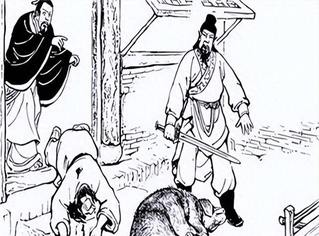 他悄悄地潜入屋内,一刀结果了恶霸的性命。