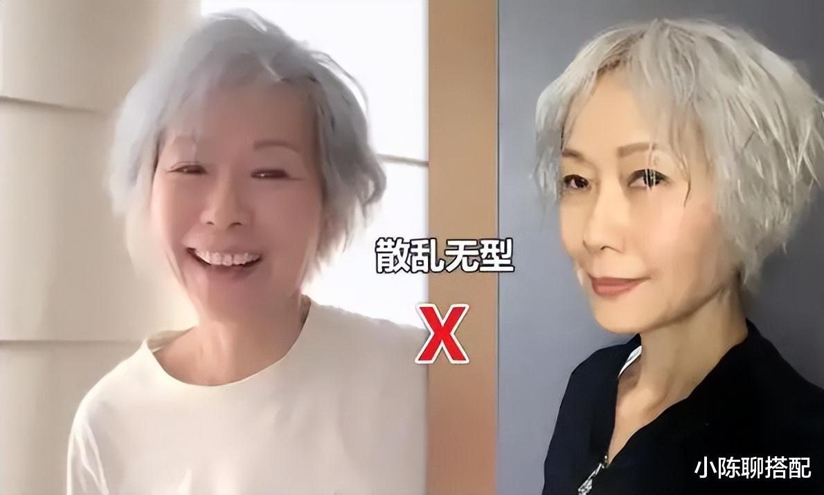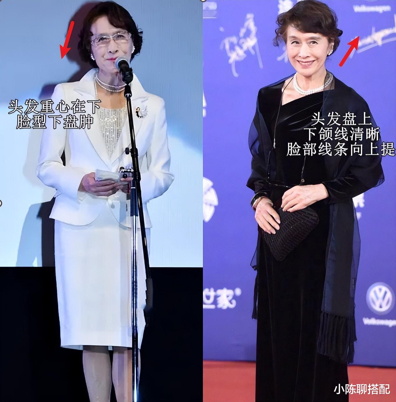 一般来说,上了年纪剪短发肯定是比长发干净利落的,因为披头散发发量又少又利索容易显得人憔悴、仪态不好。比如叶童,当她头发散乱的时候,就化妆了看上去也没有多大的变化。