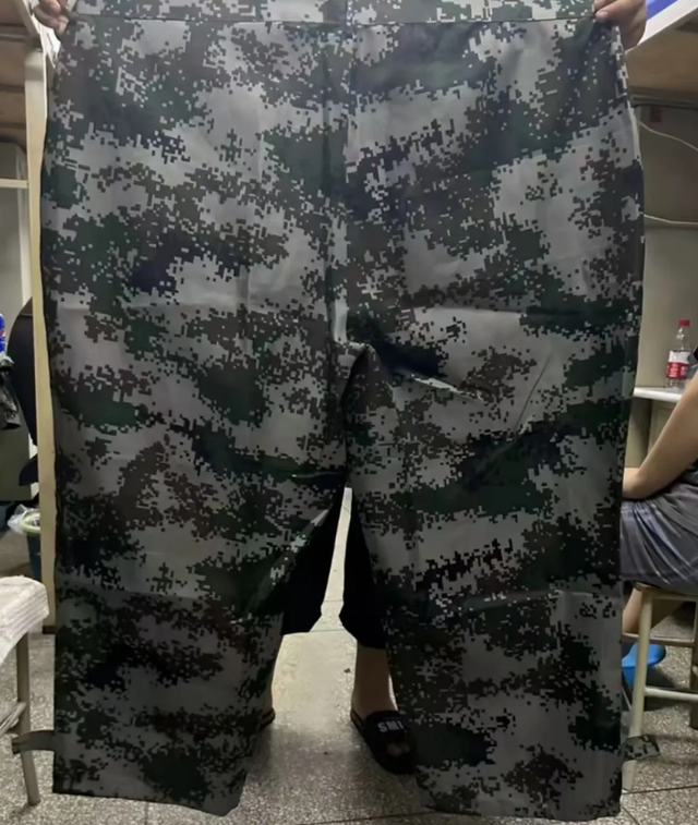 不过尺寸稍微大一点,小一点,学生们忍一忍倒也好接受,毕竟大家都不是娇生惯养出来的,但是有的同学实在是接受不了军训服的尺寸过于夸张的情况,一条裤子竟然可以让两位女同学共用,那场景想想就觉得太美,不敢看。