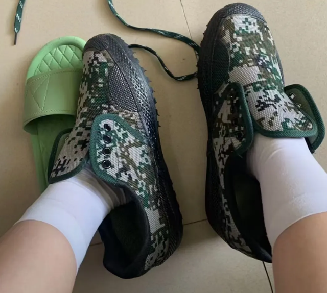 一位女同学像是36码的脚分到了42码的鞋子一样,空出来的大半个鞋垫都可以用来养鱼了。两只鞋不一样大,倒是最让人烦恼的左脚36,右脚39。女生欲哭无泪,可是我是37码呀,哪怕穿一只鞋都不舒服。