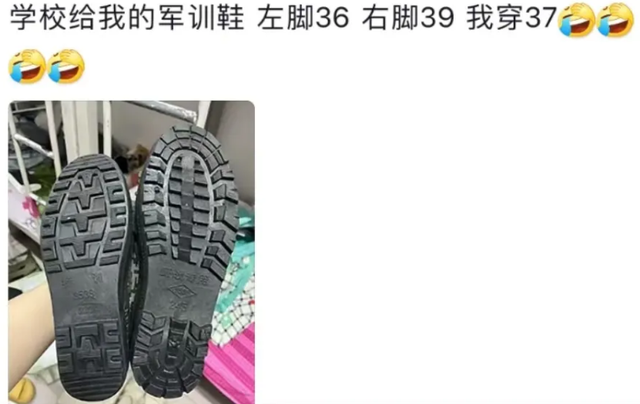 还有的同学希望老师们能够结合实际,想一下,一个小女生38码的脚怎么能穿43码的鞋子和180的裤子呢?这真的是怪自己去晚了,好的军训服都发给别人了。看来在学校里真的是要起得早才能吃上热乎的。