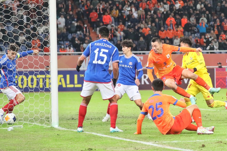 第78分钟,克雷桑受伤倒地,泽卡也坐在地上,泰山队第二次阵容调整。谢文能和石柯换下泽卡和高准翼。第87分钟,泰山队再丢一球,横滨左路传中,后点马特乌斯射门得手,泰山队1-2落后。补时阶段,泰山队顽强扳平比分,刘洋长传球,彭欣力奋力将球救回,禁区内乱战,郑铮第一次头球击中门柱弹出,紧接着郑铮头球补射将球打进,泰山队2-2绝平横滨。进球后的郑铮飞奔向场边庆祝,这一刻泰山队全队等了太久,这一分,来之不易。