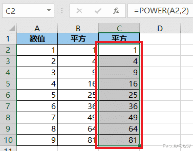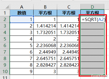案例:分别对下图 1 中的数值求平方和平方根,效果如下图 2、3 所示。