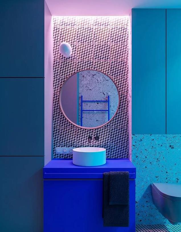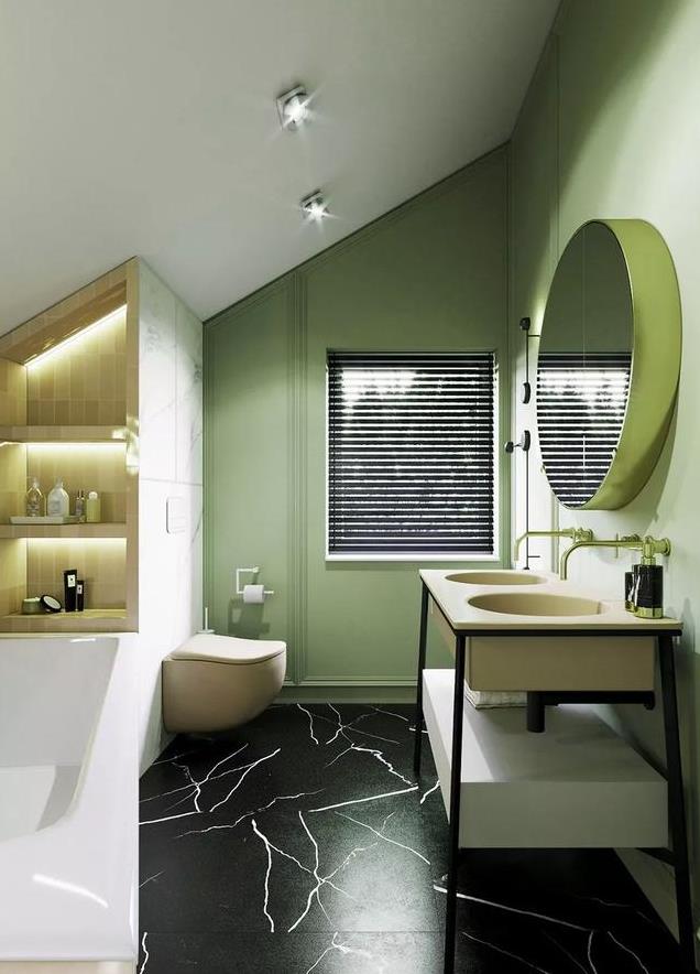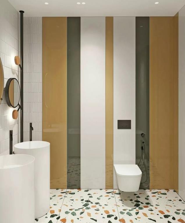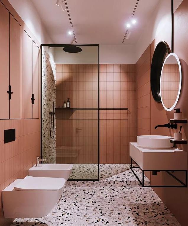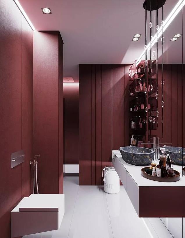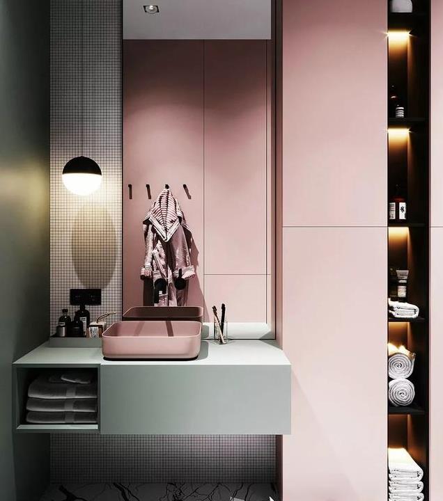 以往的洗手间设计,基本都是大面积石材铺贴,大部分都是黑、白、灰三个色系,但是随着时尚的变革,人们的审美也发生了改变,更多的业主选择了一些个性化的墙面颜色来打造卫生间。