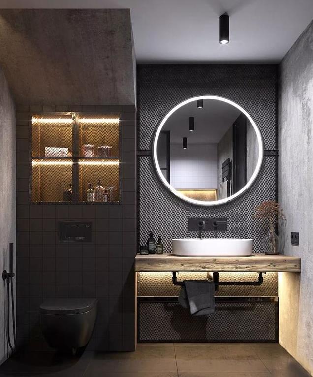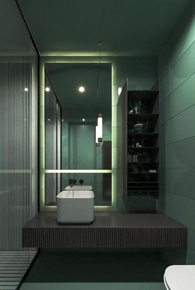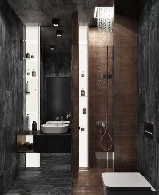 利用灯效来渲染洗手间的格调与氛围,在很大程度上可以起到画龙点睛的作用。它不仅可以提高卫生间的明亮度,为其注入更多的时尚因子,还能带来更加精致的空间感受。
