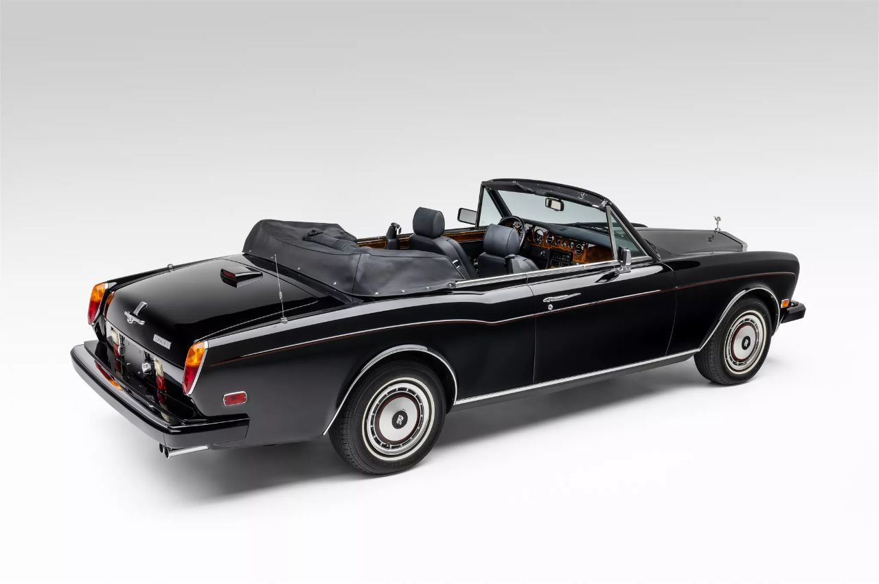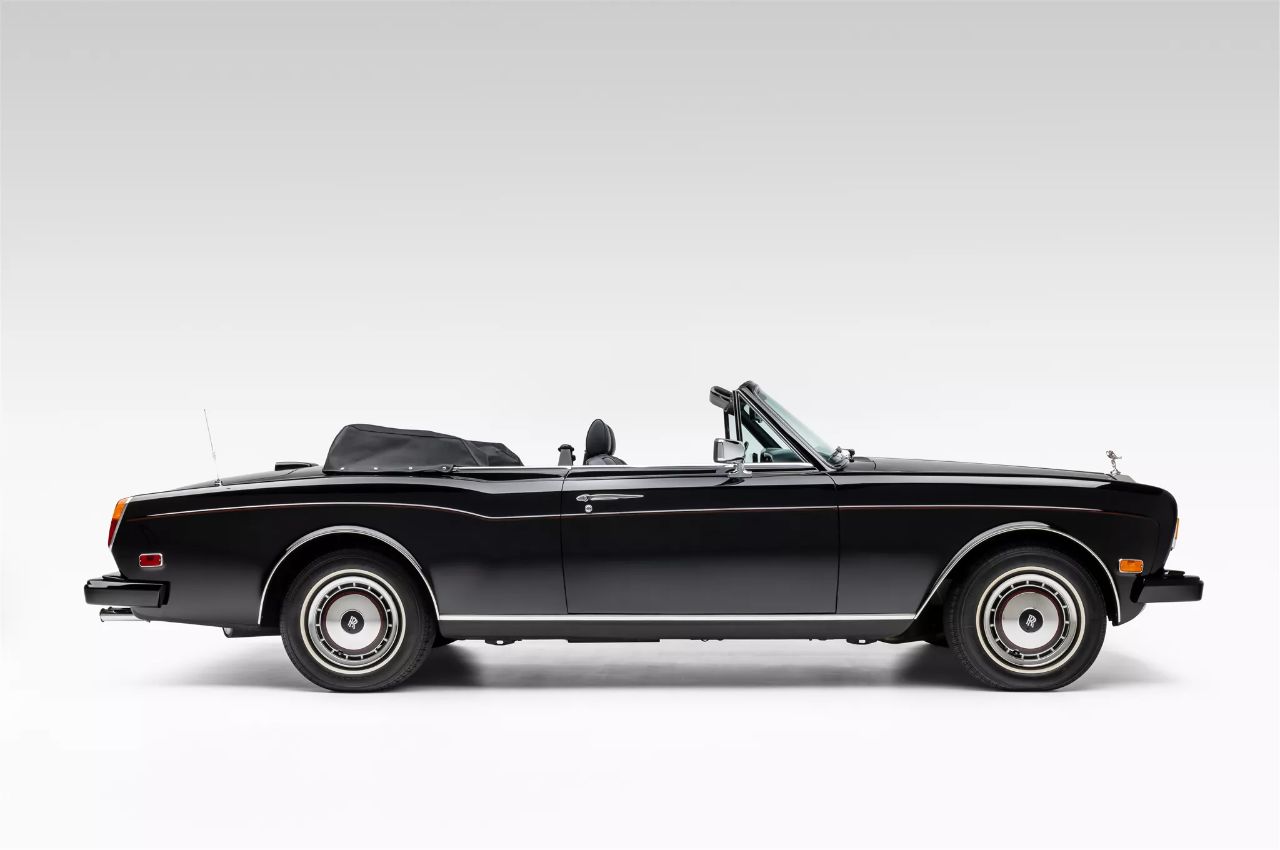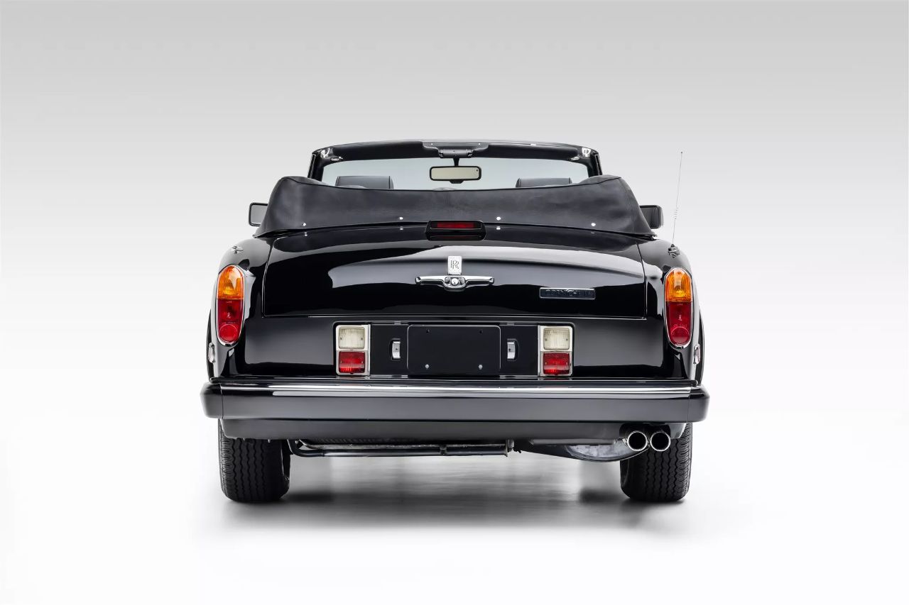 这辆来自1994年的劳斯莱斯Corniche IV拥有经典的6.75升V8发动机和四速自动变速箱,外观采用黑色车漆配以朱红色饰条,搭配原厂选配的带隔热的挡风玻璃和镀铬后视镜。
