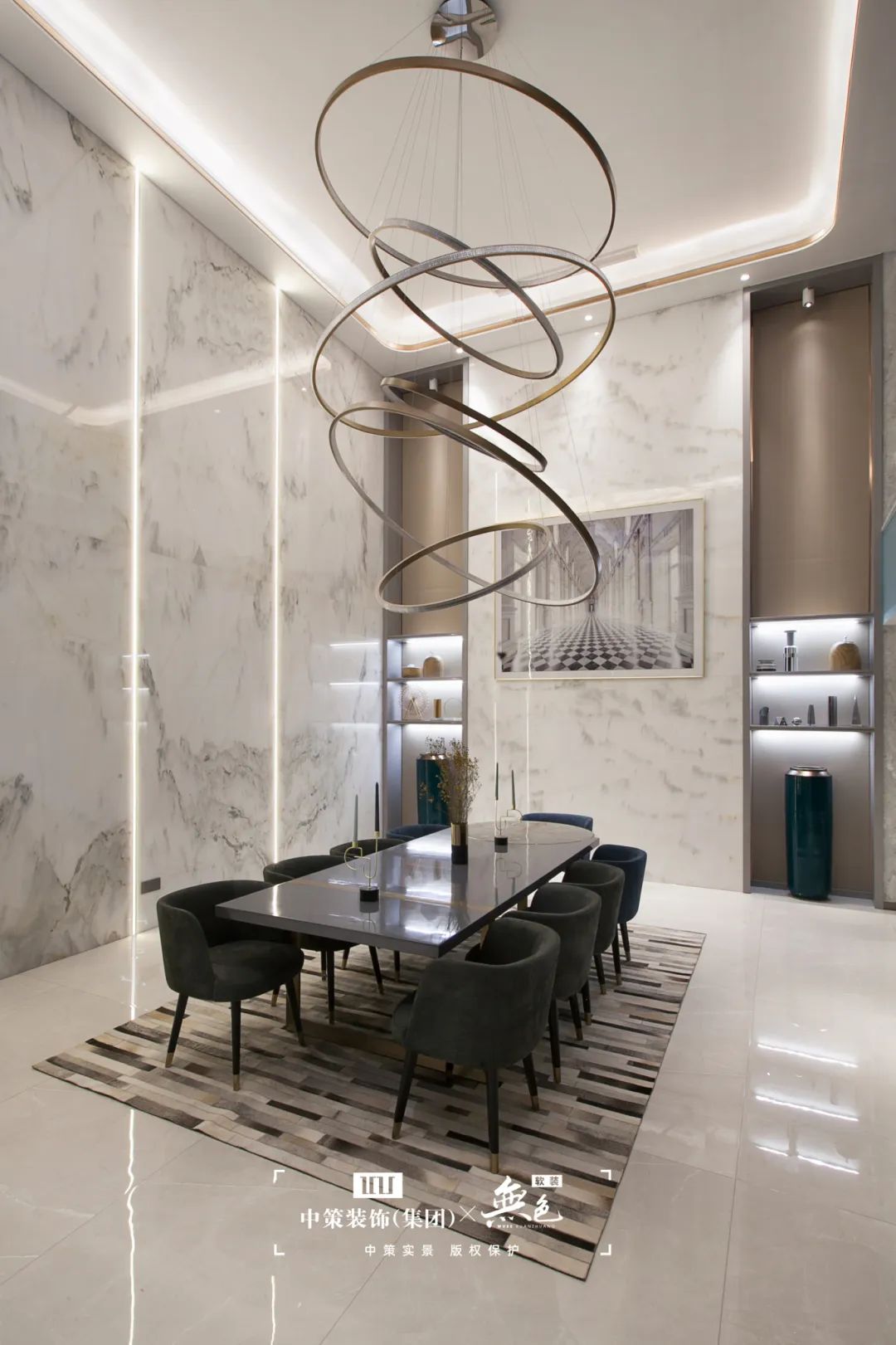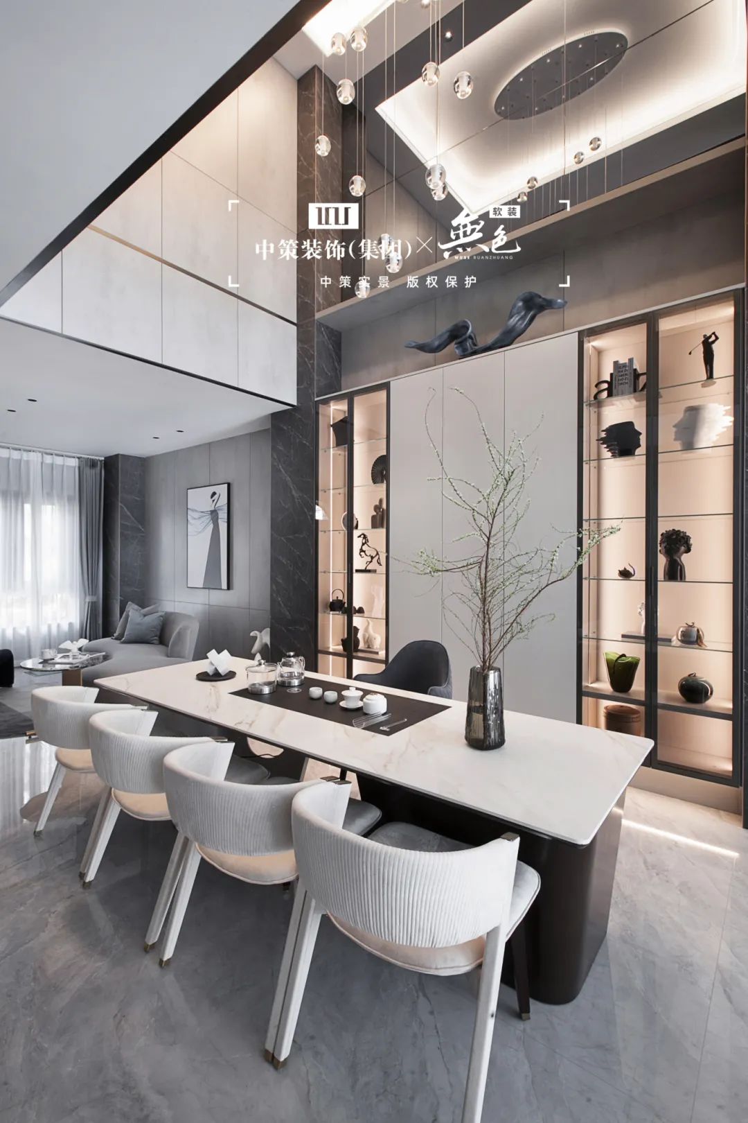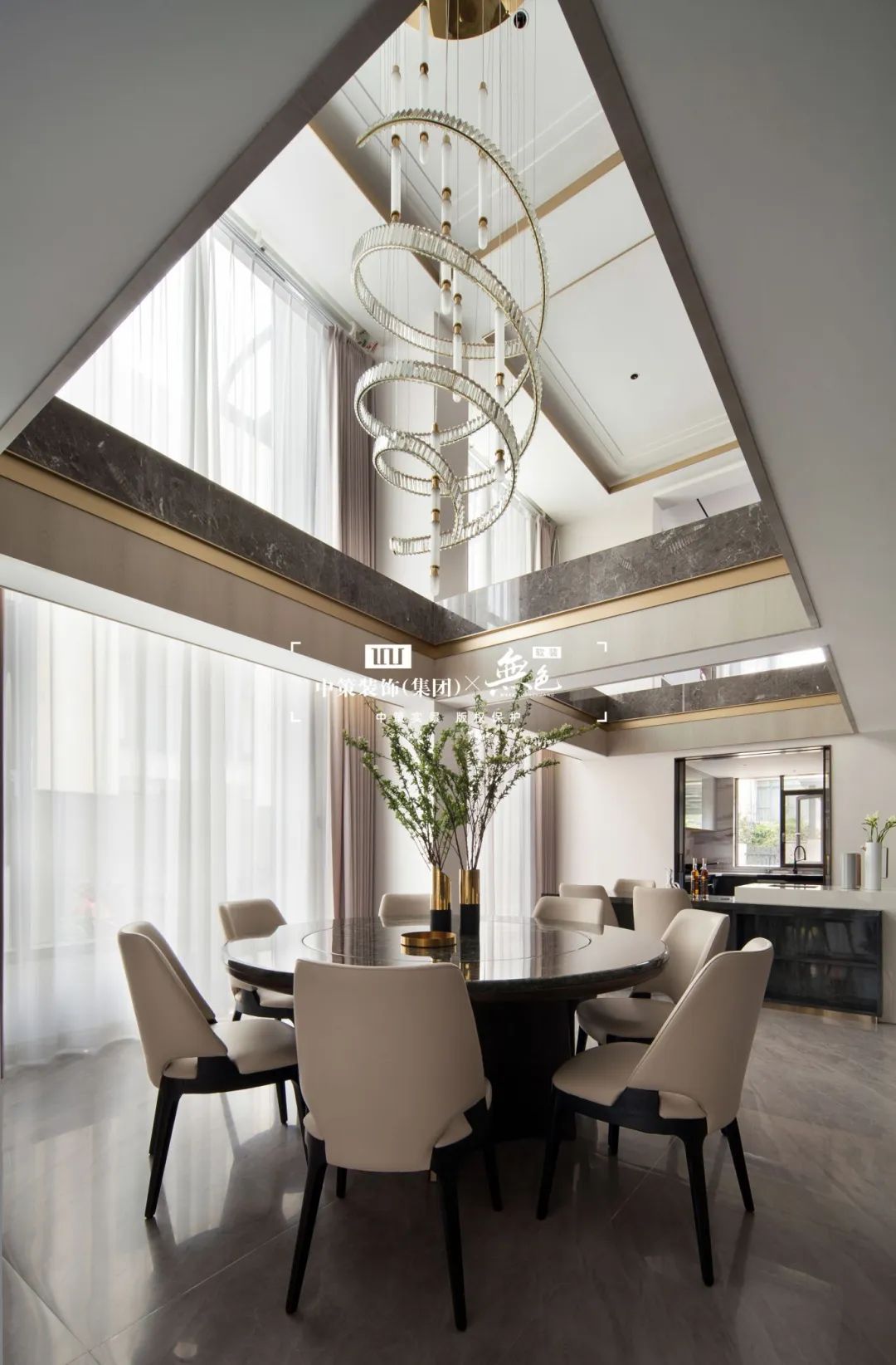 将上下层打通,增加了采光面积,避免了因楼层板产生的闭塞感,使视野更加通透开阔,同时营造出高端大气的气质,大大提升空间颜值。