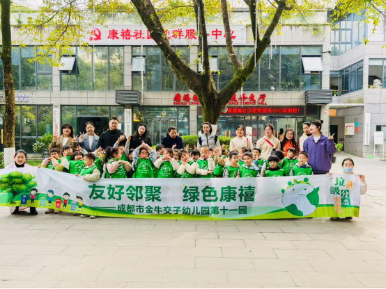 随着人们对环保意识的日益增强,垃圾分类已成为全社会关注的焦点。为贯彻教育局垃圾分类教育工作要求,加强幼儿园垃圾分类教育,提升幼儿环保意识,将环保教育延伸到家庭和社会中,四川省成都市金牛区交子幼儿园第十一园协同金牛区九里堤街道康禧社区工作人员、五老志愿者、关工委、工会、退役军人战旗红志愿服务队,开展《别让垃圾去流浪》主