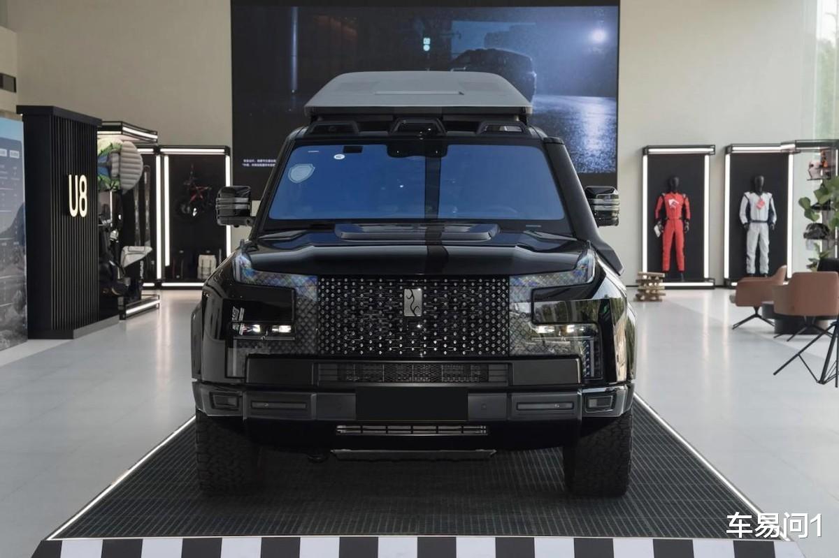 仰望U8在设计上是比较挺拔的,整车的方盒子造型采用了带有弧度的边角处置,而满天星的格栅中网没有明显变化处置,并通过X状结构融合了异形矩阵式LED灯组。同时,引擎盖顶端布局有中央隆起结构,而前保则布局了宽幅结构的立体防撞栏等处置。