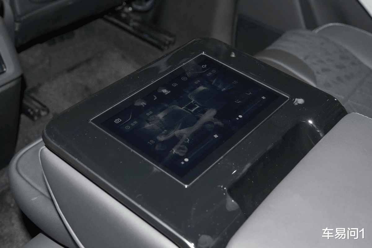 进入到驾驶舱,车辆采用了T型扇形对称造型打造,中央为12.8英寸纵置OLED触控屏,主副驾驶分别布局了23.6英寸数字仪表盘与23.6英寸MINI LED娱乐屏,而车辆后排也布局了7.0英寸多媒体控制屏以及双12.8英寸独立娱乐屏,配合前排顶部的流媒体后视镜、投影面积为70英寸的AR-HUD抬头显示系统,全车共有8块可用或可观看的“屏幕”。同时,车辆双排均布局了50W无线充电板,而方向盘、座椅均为高级真皮覆盖,中控屏下方则提供了拨杆式越野与常用功能控制键。另外,集成了怀挡的方向盘处,还提供了旋钮来控制驾驶模式的选择。