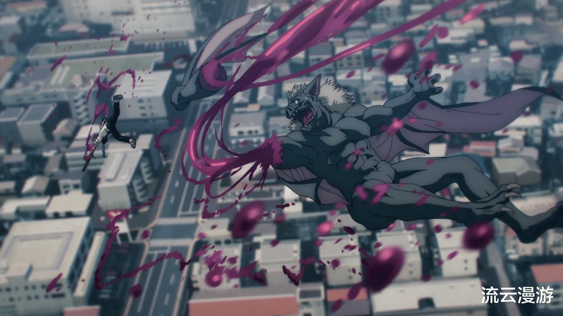 电锯一响,爹妈白养。极近距离贴脸变身,瞬息就斩断了蝙蝠恶魔的半边手臂。双方你来我往,一路从天上打到地下。后手遭到重创,蝙蝠自知难以久敌,随手抄起路旁车辆当做“明器”,朝着电次狠狠砸去。