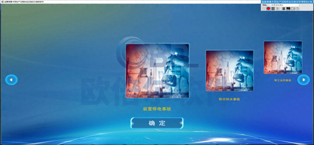 盐酸普鲁卡因生产过程安全应急实训演练软件依据计算机虚拟仿真技术进行开发,运用数字化真实再现盐酸普鲁卡因生产中的事故及处理。软件模拟了装置停电、停循环水事故、停工业风事故、反应釜泄漏事故、正丁醇回收泵泄漏着火事故、加氢反应釜超压事故、气动调节阀故障、酯化反应釜泄漏中毒事故,软件与现场半实物相匹配,训练与实操相结合。