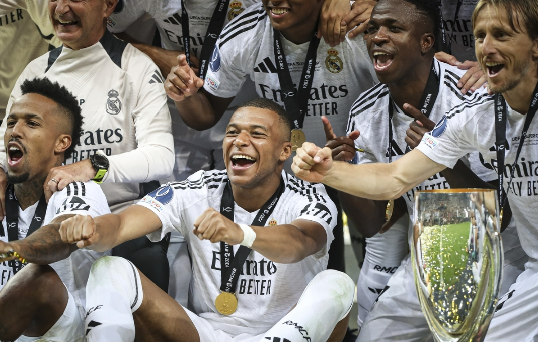 欧洲足坛开启了新赛季的争夺,备受关注的超级豪门皇家马德里首场比赛迎来欧洲超级杯的比赛,对阵亚特兰大,经过90分钟的角逐,皇马取得开门红,顺利2-0击败亚特兰大,队史第6次夺取欧洲超级杯冠军。为皇马完成进球的是2大天才球星巴尔韦德和姆巴佩,小熊和贝林厄姆则送出了助攻。