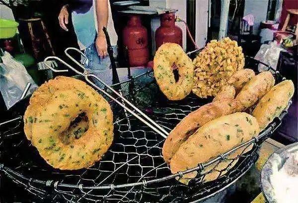 油炸糯米糕和油炸烧卖堪称碳水炸弹,但碳水确实令人快乐,而且里面往往会撒辣椒粉来迎合湖南人的嗜辣,炸春卷也会在传统的韭菜、肉末的馅料中加入剁椒,香而且辣的口感在其他地方的炸物中是很难见到的。花生粑粑、虾子粑粑、红薯粑粑,则是分别将花生米、小河虾、红薯丁再裹上面糊,面糊中有盐调味,炸出来之后,盐与花生、河虾、红薯会产生很奇妙的复合味,可见长沙人在选择炸粑粑的食材上也是经过一番考量的。