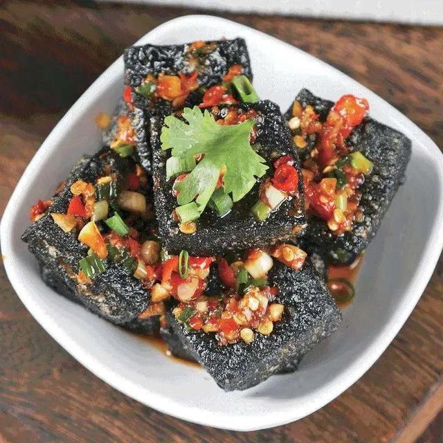 长沙臭豆腐又名青方,生的时候是青灰色,油炸出来以后是黑色,与江浙一带流行的黄色臭豆腐色香味都很不一样。长沙臭豆腐的“臭”其实是一种很重的卤水味,江浙臭豆腐则与当地的霉苋菜梗一样,是真正的臭味。长沙臭豆腐的主要吃法是先油炸,炸出来以后捅破酥脆的表皮,在辣椒水里面一裹,让辣椒水渗透臭豆腐内部纹理的每个角落,一口下去热辣爆浆,满口留香,直呼过瘾,江浙臭豆腐则一般蘸甜辣酱食用。所以,如果只尝试过其中一种就觉得臭豆腐不好吃的朋友,不妨也尝试一下另一种,因为二者差异委实太大,你很可能会喜欢另一种。