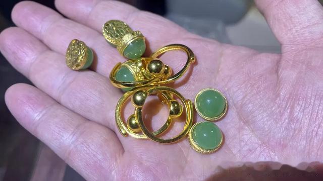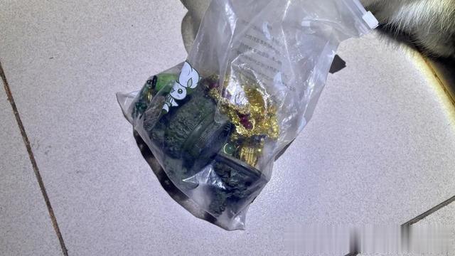 一把金饰品挂件,金佛金锁金算盘,不知道是不是真金的,拿着很有分量,磁铁也不吸。