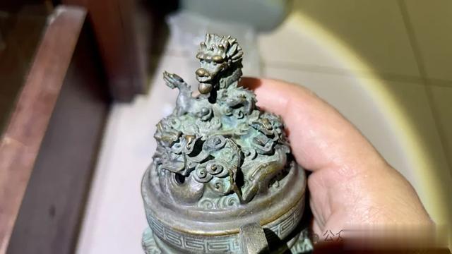 满身纹龙香炉一个,打开盖子看了下以前有人使用过。