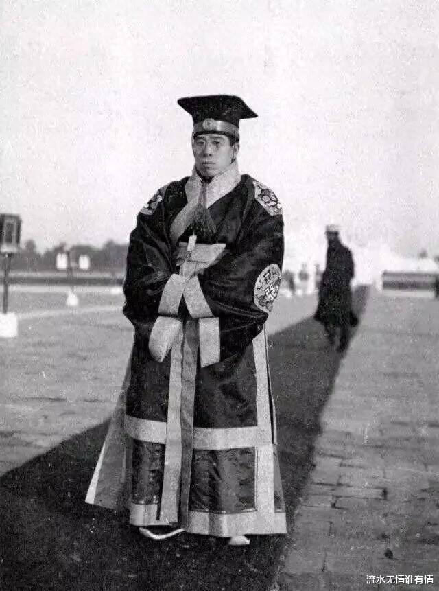 1914年冬季,袁世凯的祭天活动现场,杨度留下了一张罕见留影,镜头中,杨度身着一袭华丽的汉服,他戴着眼镜,一脸的斯文相。