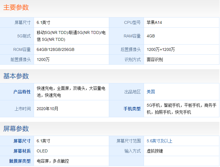 6.1英寸OLED屏,刷新率60Hz,A14处理器,支持20w快充。从整体来看,国内4千价位以上的手机,都支持高刷新率了,不过据说全系12都不支持高刷。其次,20w快充也只是千元机的配置,同等价位也基本都是50w快充。