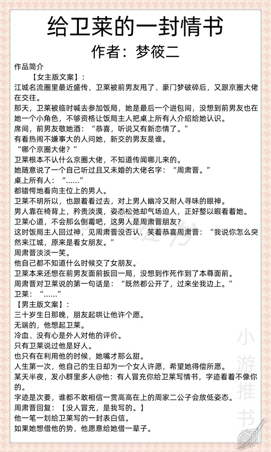 11.《给卫莱的一封情书》 作者:梦筱二 //字数:33w