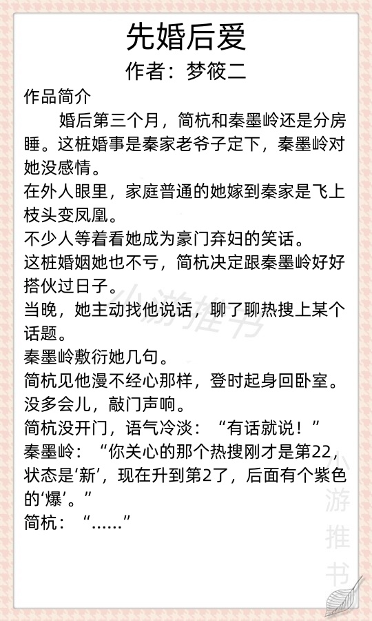01.《先婚后爱》 作者:梦筱二 //字数:44w
