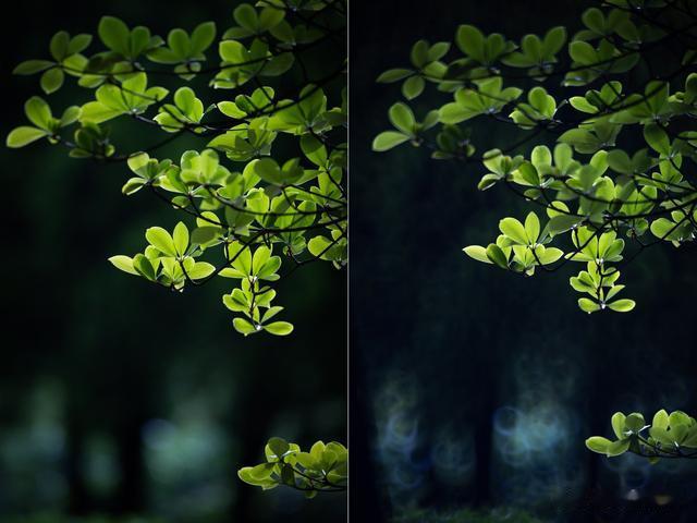 这张被微弱光线照亮的树叶,传统长焦镜头与折返镜头的成像锐度和清晰度几乎一致,焦外虽然由于光点并不明显的缘故,但甜甜圈的效果增添了画面的趣味性。