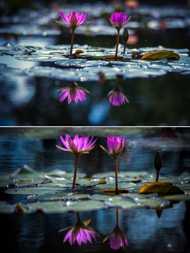 这张水中的睡莲由于并不是和上面两组一样相同位置拍摄,存在些许偏差,但通过高光点的甜甜圈成像效果来看,我还是更加喜欢折返的效果。
