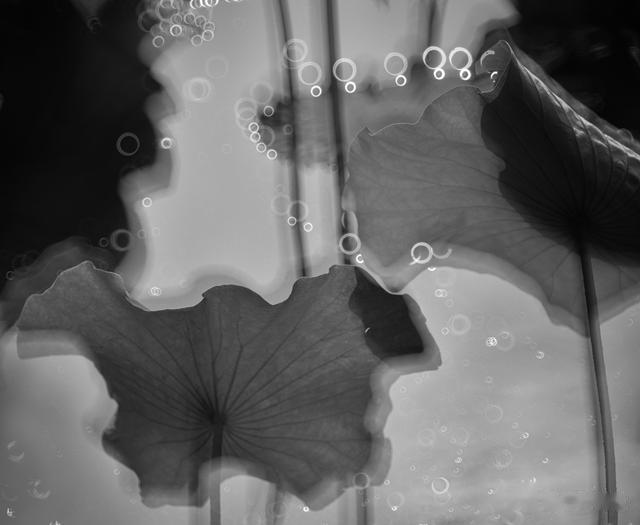 其我最喜欢的是黑白这张多重曝光的荷叶,不知大家是否和我的感觉一样。