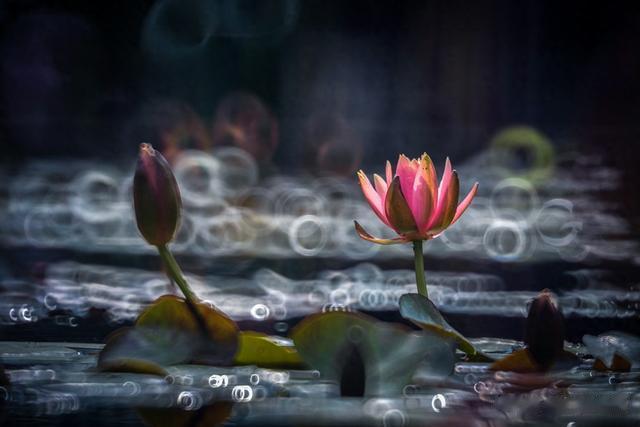 这两张黑白效果的荷叶,可以很直观的看到这只镜头的成像特点,甜甜圈的同心度很不错,营造梦幻效果的能力很强,配合上多重曝光等创意拍摄方法,确实能获得与众不同的一些作品,同时由于可以手持拍摄的优势,相比传统折返镜头来说,创作的可玩性又增添了不少。