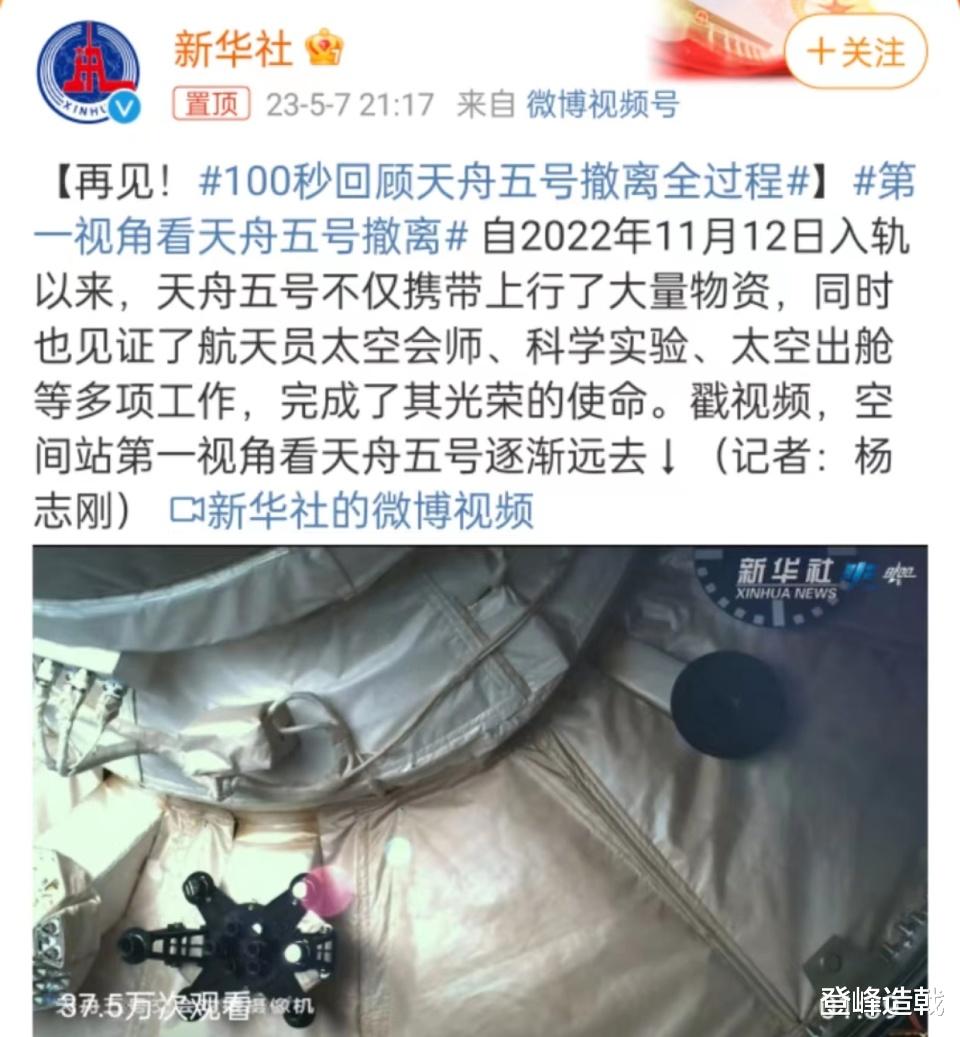 今日,媒体公开了一段长达100秒的天舟五号撤离全过程视频,让无数网友感叹祖国的强大,我国航天的科技创新。
