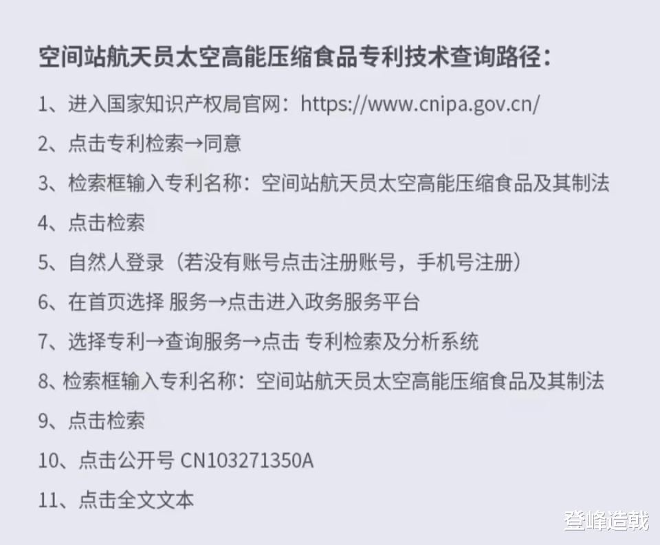 是具备专利的空间站航天员太空高能压缩食品及其制法,解决了普通压缩食品能量密度不高、碳水化合物单一,并且功能性较差的缺点。