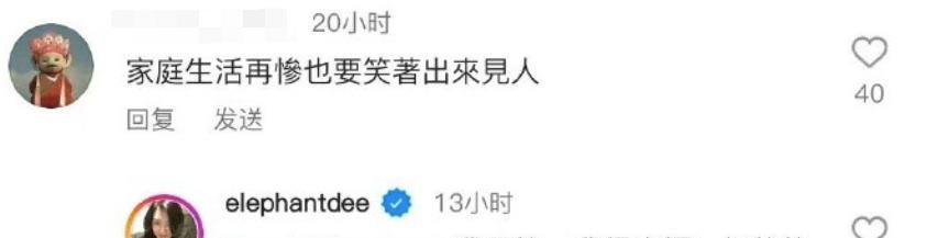没过多久就有网友留言,称小S生活实在太惨了,不过家庭生活再惨,也要笑着出来见人。没想到小S看到这样的言论亲自回复:我不惨,我很幸福!相信的人就相信,不相信的人我懒得再费口舌。言语之中表示对于网络上一切猜疑都不予回应,幸不幸福,网友自己猜去吧。