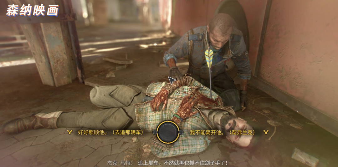 前面无线电归属选择,会改变这里的局面。如果选择给治安者,弗兰克就会死于叛军对鱼眼餐厅的围攻。如果选择给夜行者领导的生存者们,弗兰克决定与杰克和胡安一起和上校谈判。结果派来接他们的叛军,却用毒箭射倒了弗兰克,居然是一场鸿门宴,这时我们可以选择留下来救弗兰克还是去追逐叛军的车。