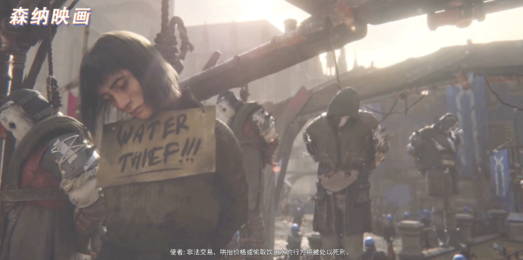 在我们从线人那里拿到GRE钥匙,通过下水道一路逃命,来到了维勒多的集市。很多生存者就在这里汇集。由于主角身受夜魔感染,并且还没有类似“健康码”的手环。恐惧的民众以为我们是下水道钻出来的丧尸,叫嚣着要把我们吊死,所幸被一个叫作“哈肯”的男人救下。
