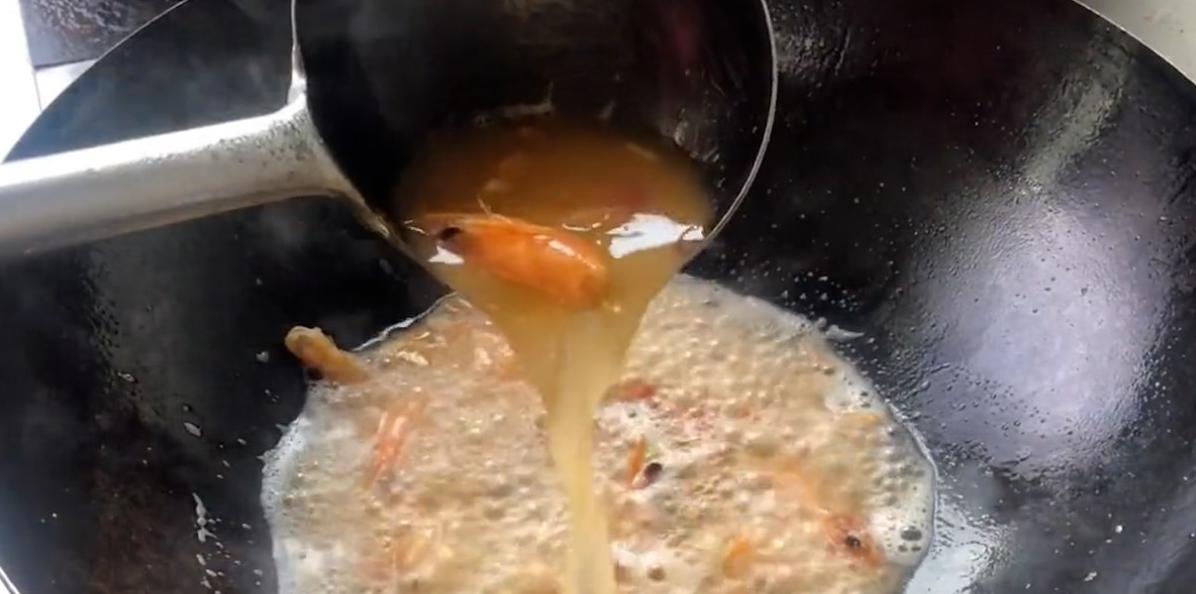 葱姜爆香是提味的关键步骤,而虾壳熬制的虾汤能让整道菜更加入味。