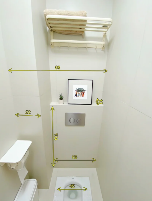 可以请设计师和施工师傅帮忙一起规划,把这个狭小的空间改造成壁龛,增加卫生间的收纳空间。