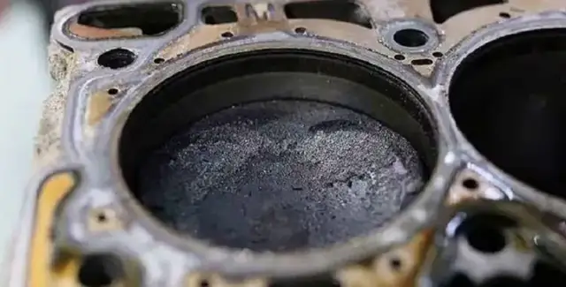 喏,就是下面黑乎乎的胶质物质,一般会附着活塞顶部、火花塞、燃烧室内壁、节气门、进气管道等部位,导致车辆出现油耗增加、启动困难、怠速不稳、加速无力、动力下降现象。