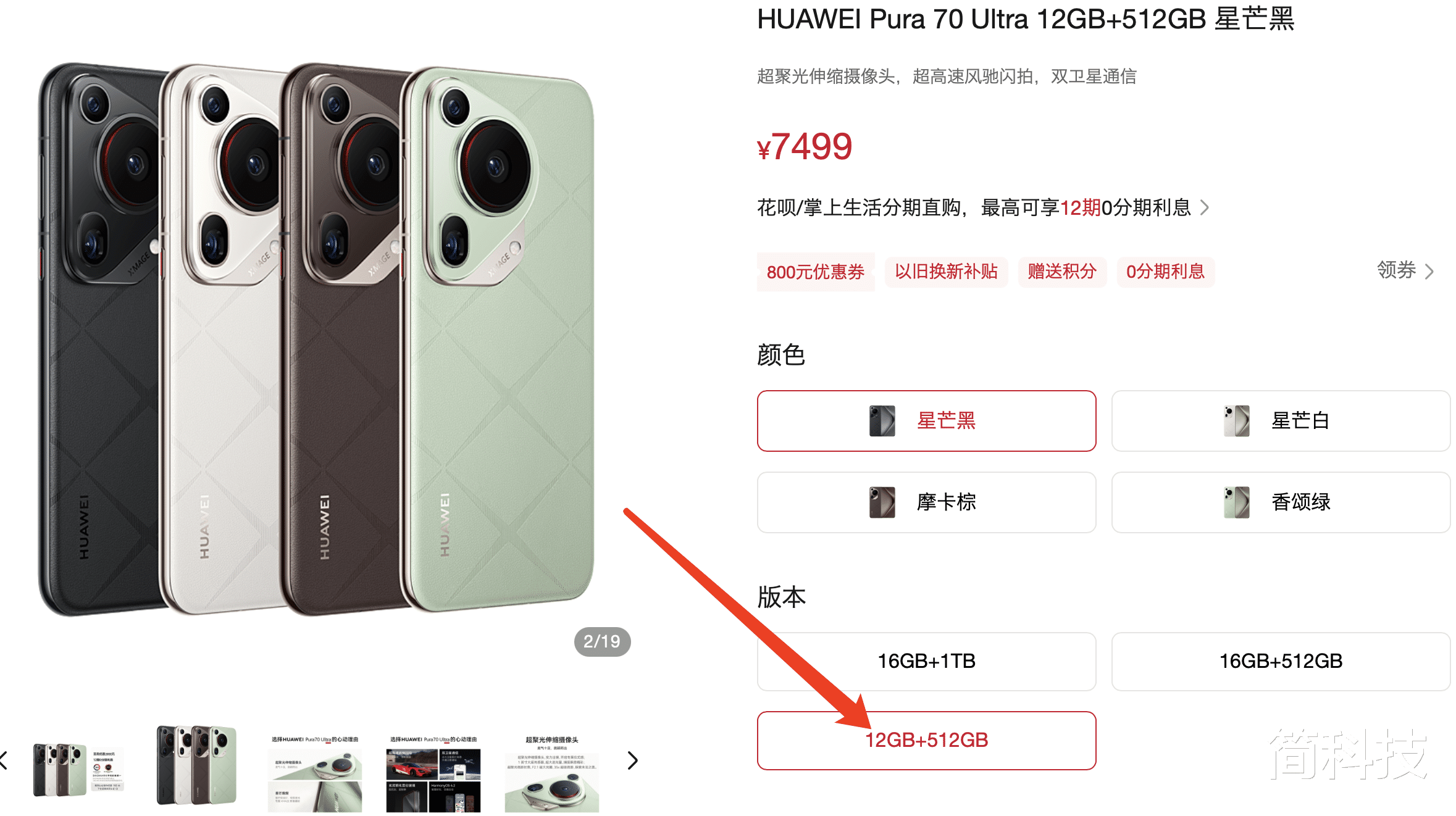 根据华为官方信息来看,华为 Pura 70 Ultra 新推出了一款 12GB+512GB 的存储版本,售价 7499 元。