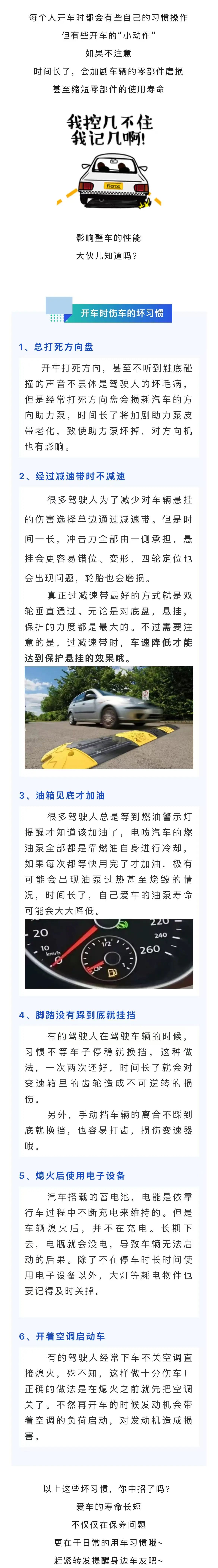 快看你有没有这几个极易忽视的“毁车”小动作!