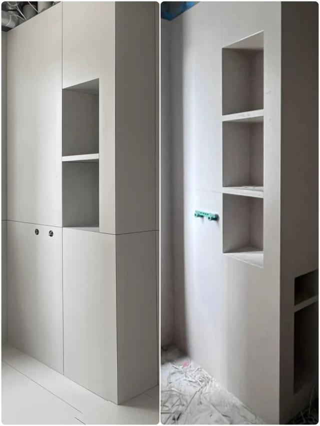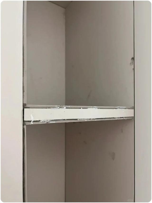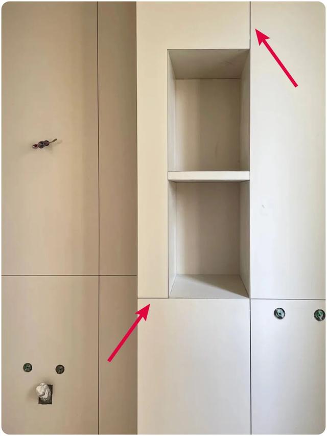 ▲壁龛的层板厚度不一,视觉效果不佳,无论现场实际情况如何,都应及时进行调整,而不是事后再说。