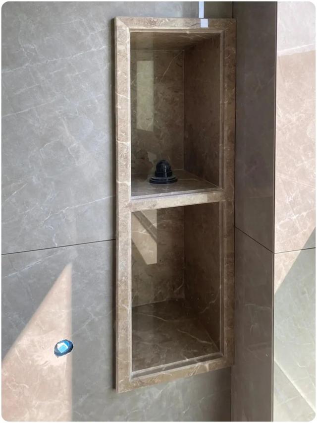▲目前壁龛要么使用瓷砖,要么使用金属壁龛,搭配石材会显得很美观,但如上图所示则显得不够美观,过时的审美观。