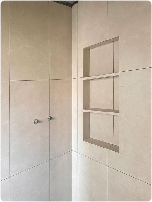 ▲为何一个壁龛的瓦工费用要收取600-800元?因为工序繁琐,倒角位置较多,瓦工必须细心操作,倒角和瓷砖破损是常见问题,虽然小崩瓷可以通过美缝处理,但不倒角不妥,效果极不美观。