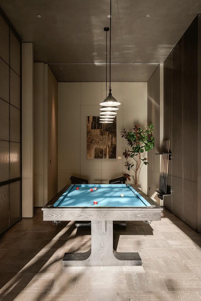品质黑与现代质感的健身器材结合,皆与空间意境呼应,同时兼具实用功能。