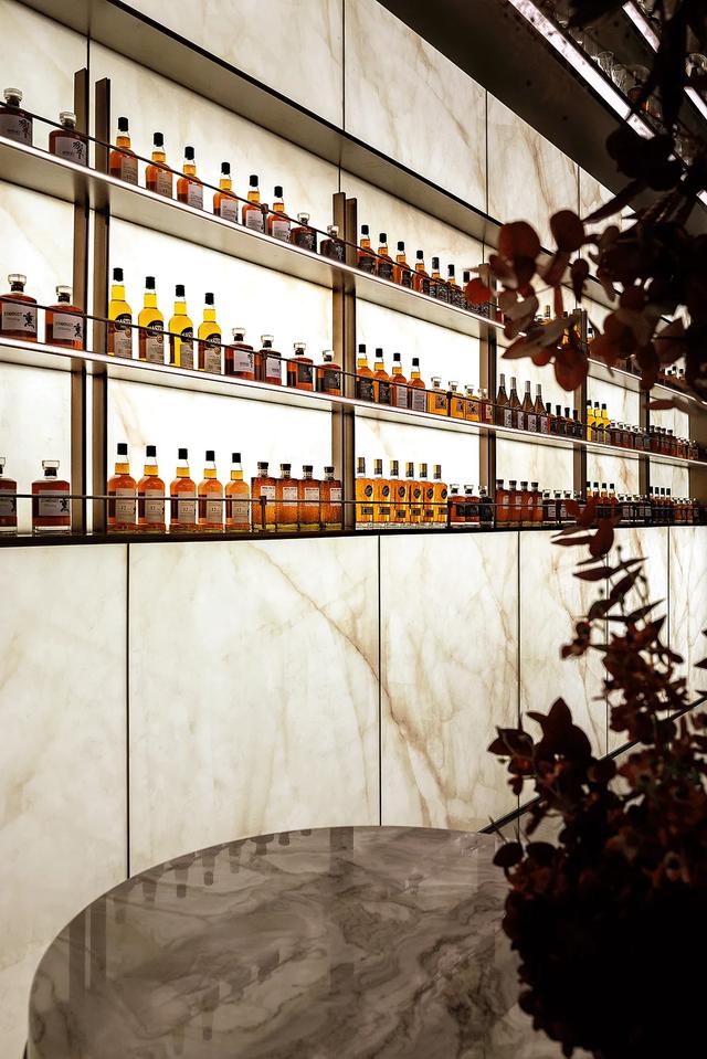 墙体“铜版画”黄铜的物质性悬浮在金属网上,展现出风景、水中的倒影和与光线产生共鸣的丝质痕迹。将行云流水之势凝于境中。红枝干果、飞舞金叶、斑驳黛石,禅意与自然在其中流转。